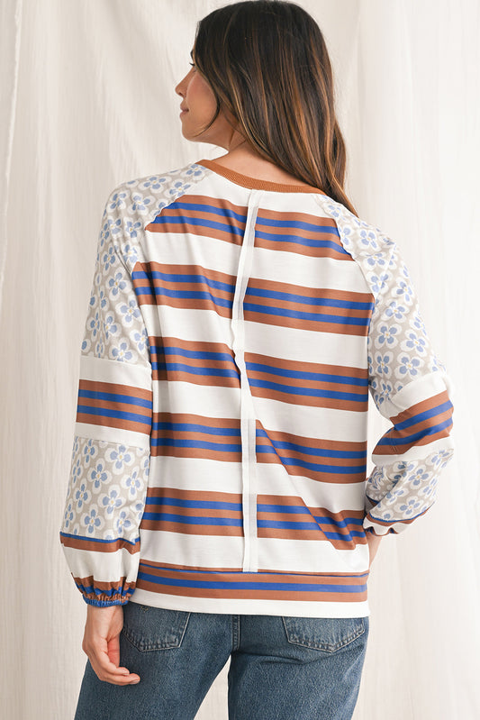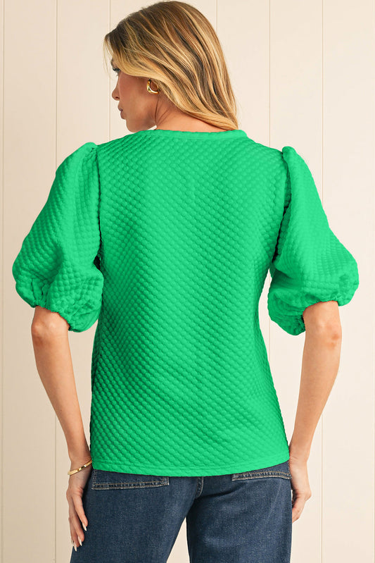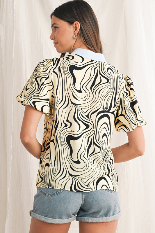 White Zebra Print V-Neck Puff Sleeve Blouse