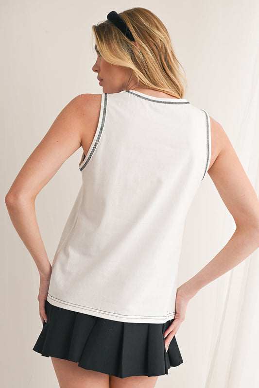 White Stripe Contrast Trim Rib Tee and Pocketed Shorts Set