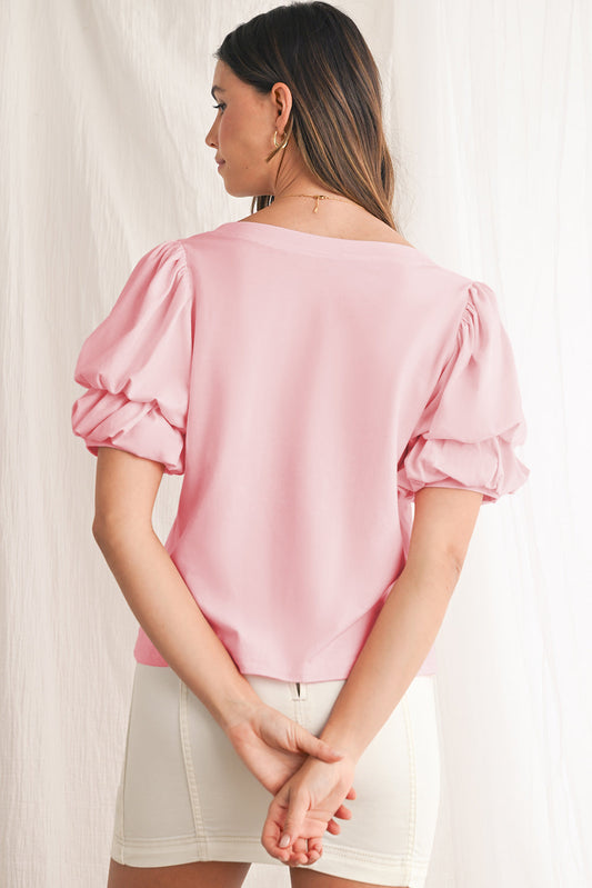 Light Pink Scoop Neck Puff Sleeve Blouse
