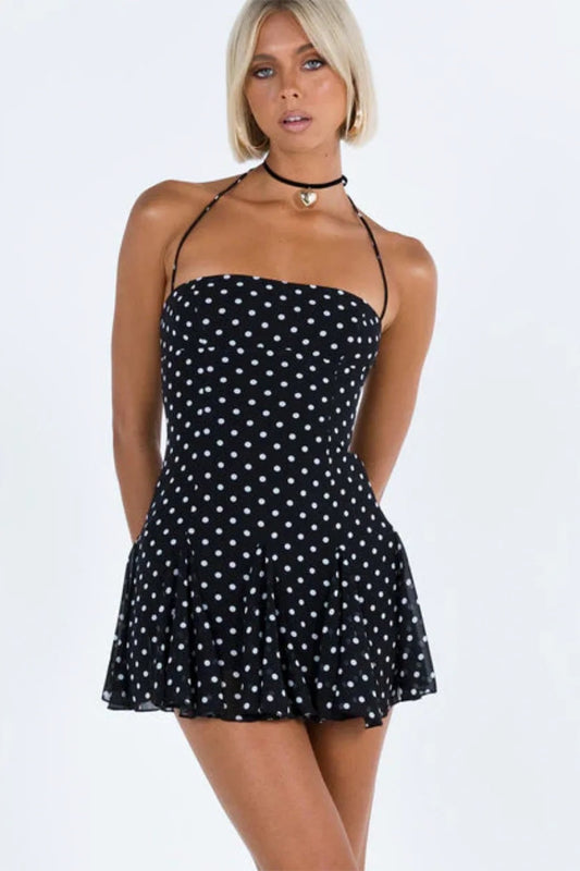 Satin One Shoulder Mini Dress with Rufffle hem