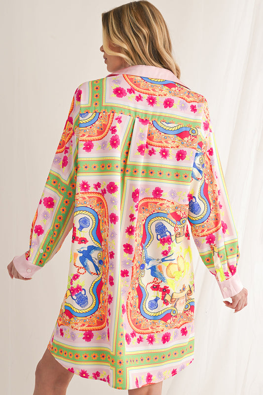 Multicolour Abstract Print Button Long Sleeve Shirt Dress
