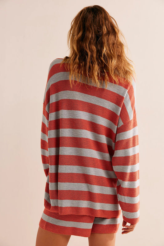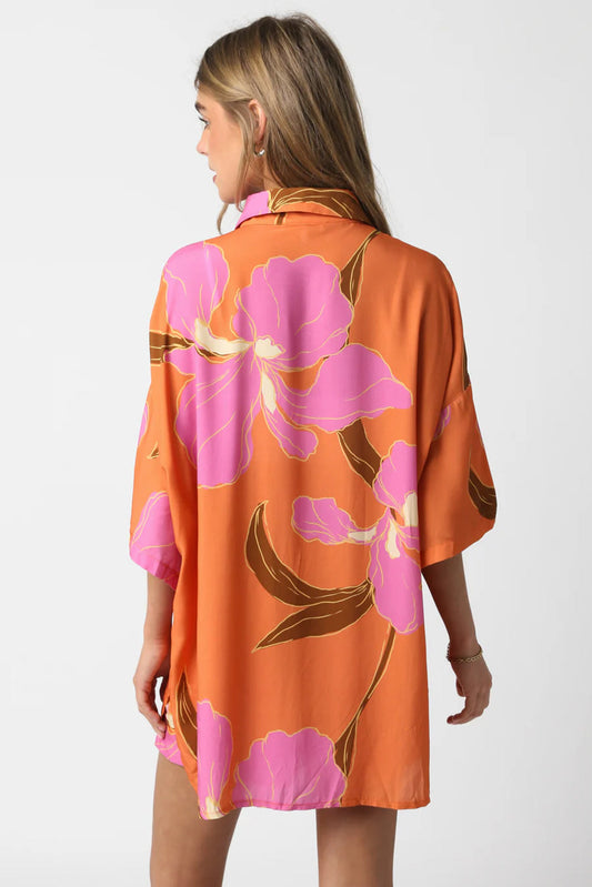 Russet Orange Floral Print Loose Shirt and Shorts Set
